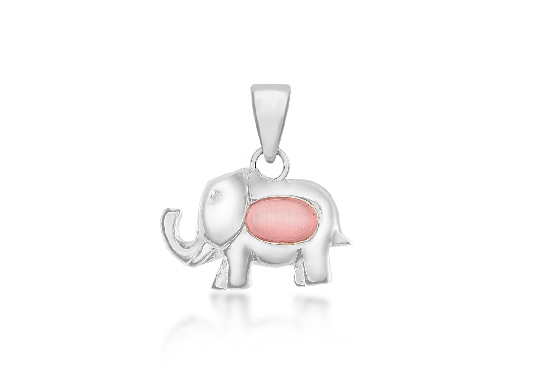 Sterling Silver Pink Cats Eye Elephant Pendant
