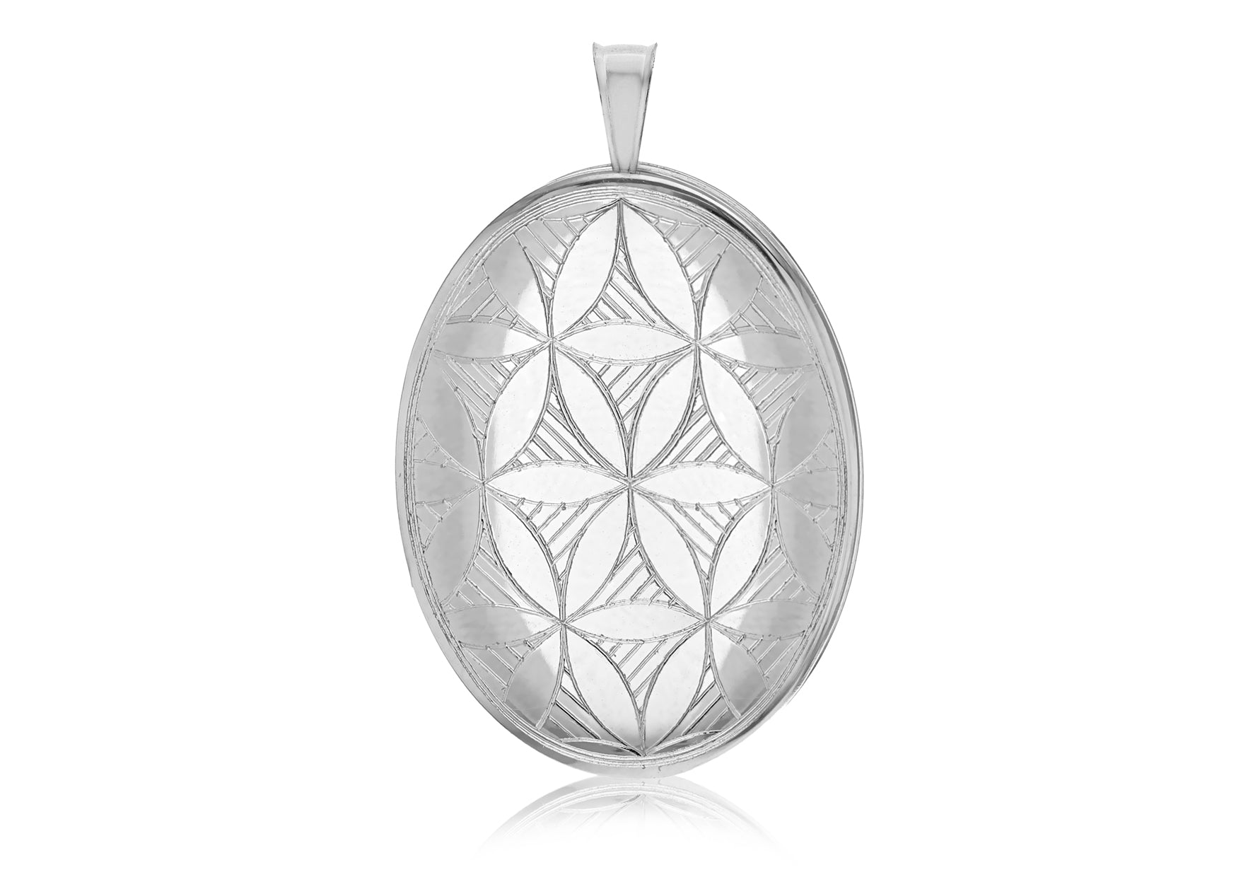 Sterling Silver Rhodium Plated Oval Art Deco Locket Pendant