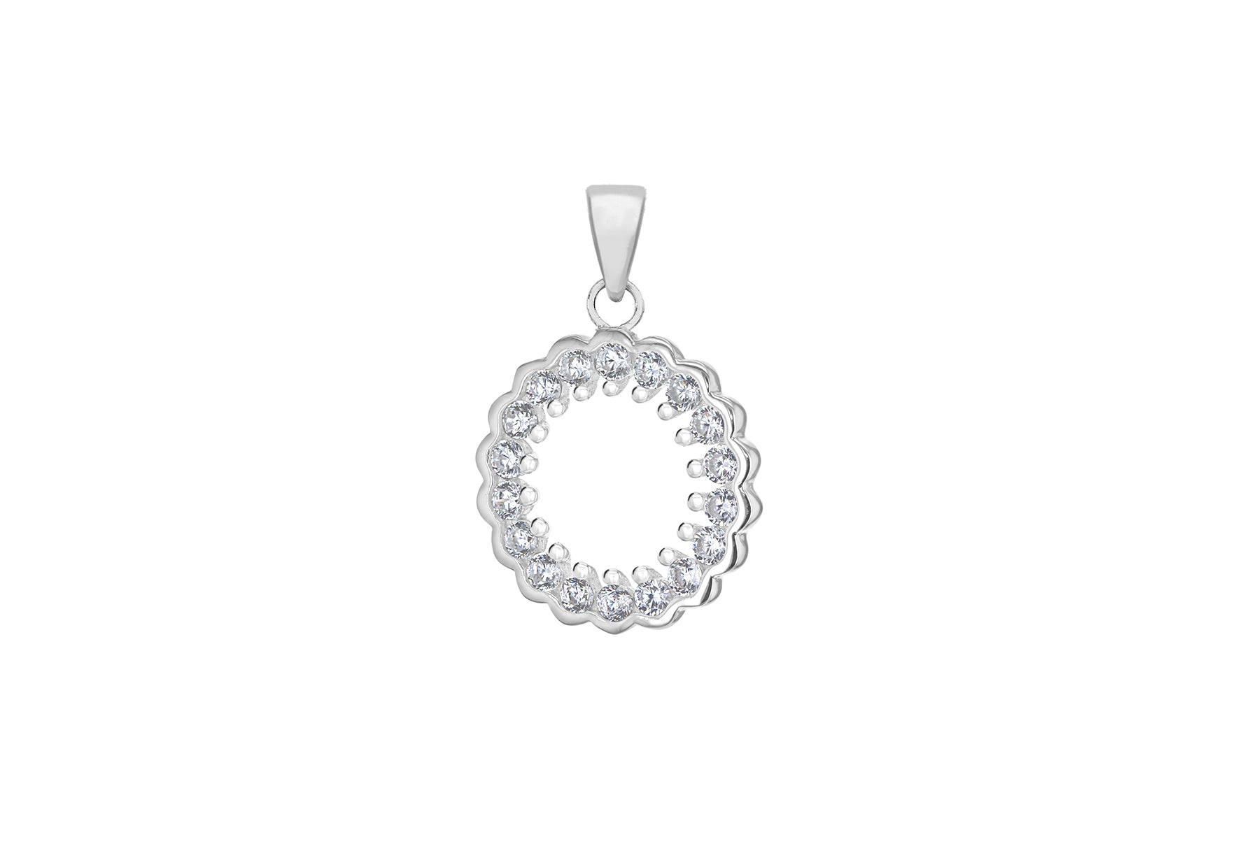 Pendant Height: Including Bail 23.4mm Pendant Width: 15.7mm Finish: Rhodium Plated Setting: Claw / Rubover Stone Details: 18 x 1.8mm Round White CZs Style: Stone Set Product Type: Pendants Metal Colour: Rhodium Metal: Silver
