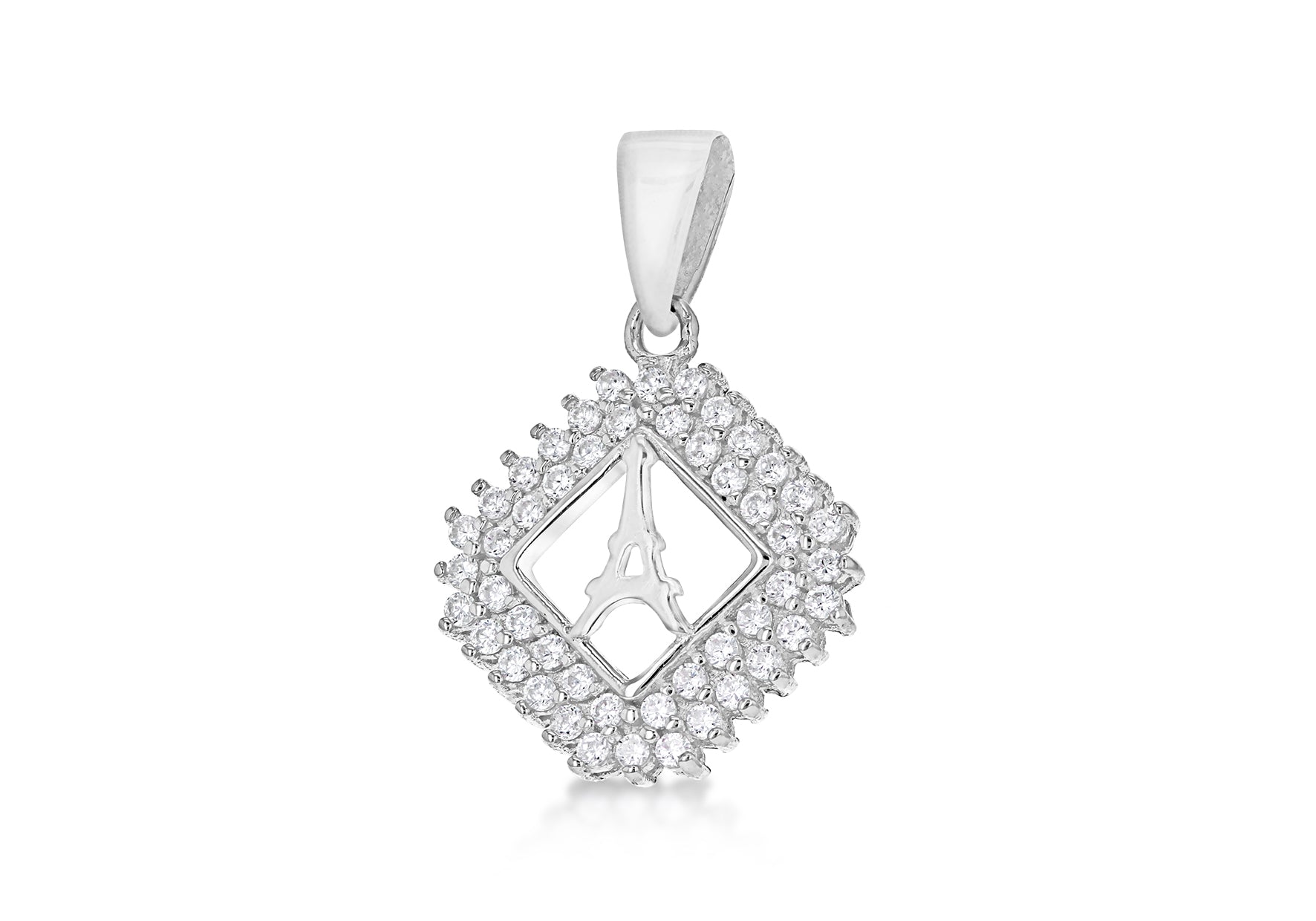 Sterling Silver Rhodium Plated Zirconia Eiffel Tower Pendant