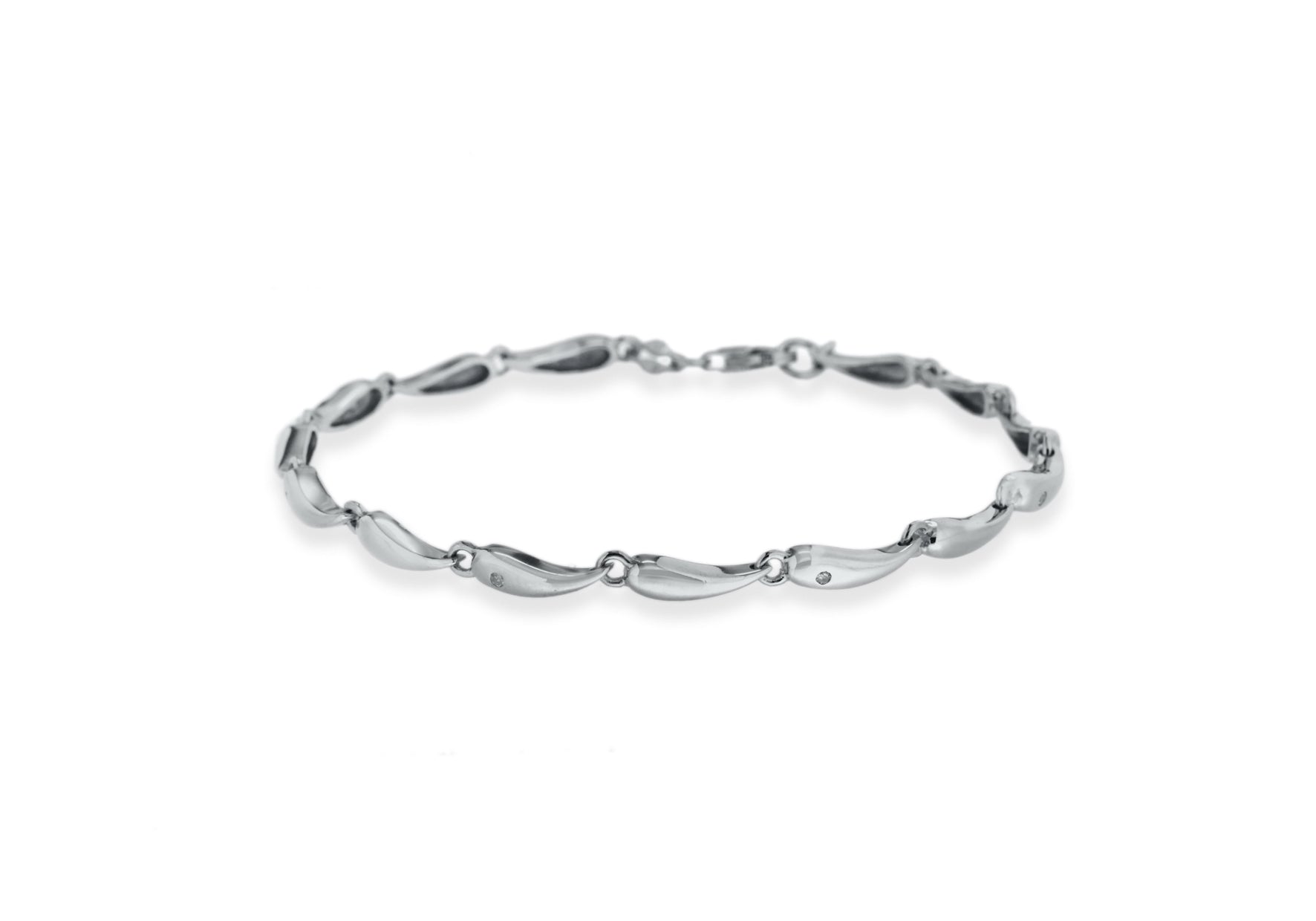 Sterling Silver Rhodium Plated Diamond Twist Link Bracelet