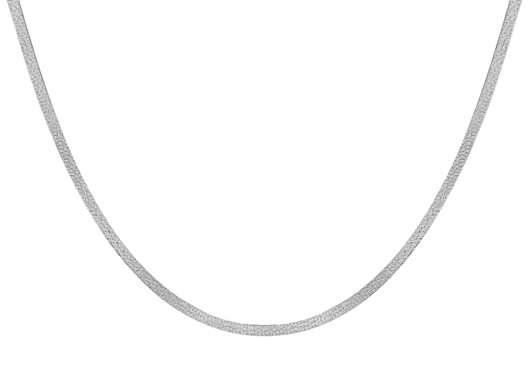 Sterling Silver Rhodium Plated Textured Herringbone Chain